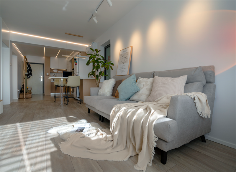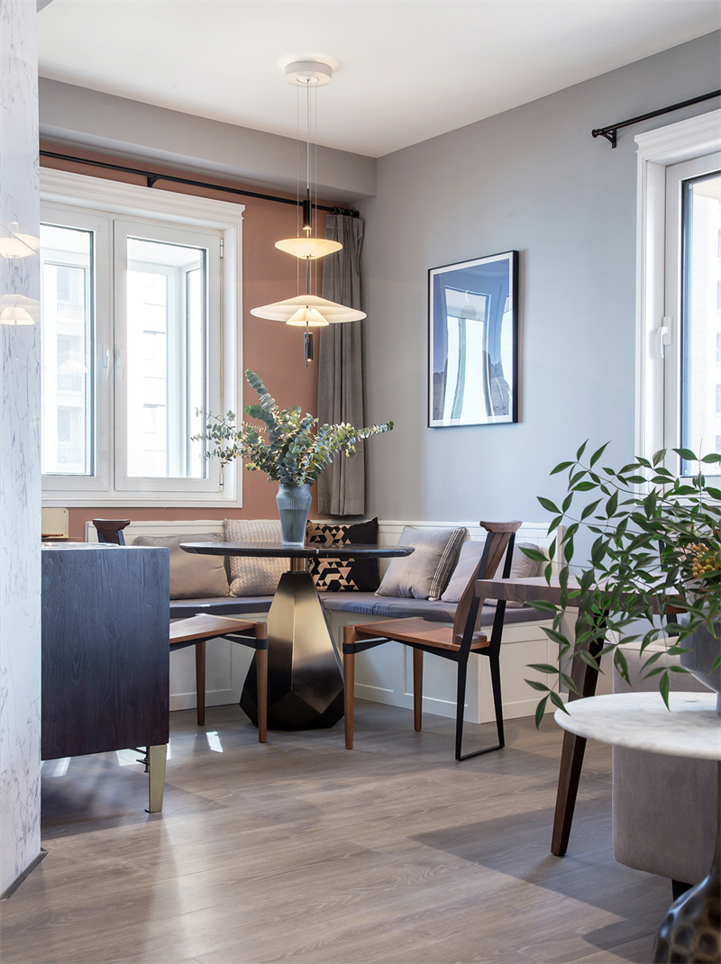不同于柔和的原木色,棕色总是呈现出厚重的质感,但浅淡的棕色却能够弱化深沉的氛围,让人感受到温馨与自然。在美妙而丰盈的秋天,浅棕色地板给予了室内最有力的安全感。