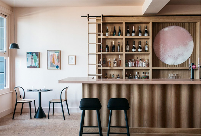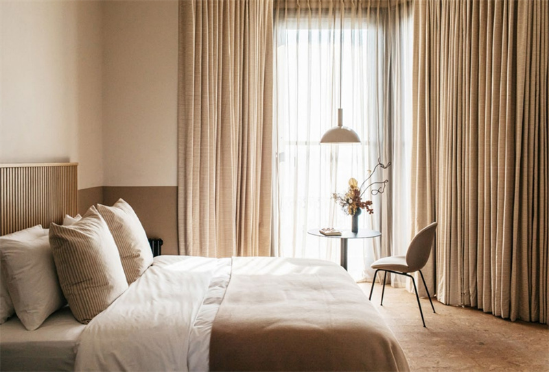 无论是酒店套房内还是吧台休憩区,软木地板天然的纹理色调与场景中的元素相辅相成,营造出柔和温暖的主基调。软木柔软保暖的性能,让整个空间透出静谧之美的同时,又给予了其家的温度。